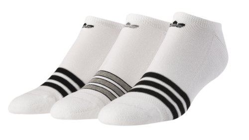 | By Amazon Verified Purchase This review is from: adidas Men's Original Stripe 3-Pack No Show Sock (Apparel) The socks featured on this page are great all-around socks. I wear them both as athletic socks and as casual socks. However, don't be misled (as I was) by the title of the product. "Asst/Black/Aluminium/White" means three pair of the (black) socks that are in the picture. As I said earlier, they're great socks; I was just expecting two pair of white socks and one pair of black socks in the package when I ordered them, as that is the only pack I've seen available in the brick & mortar store. But if you're shopping for black no-show socks, look no further. |